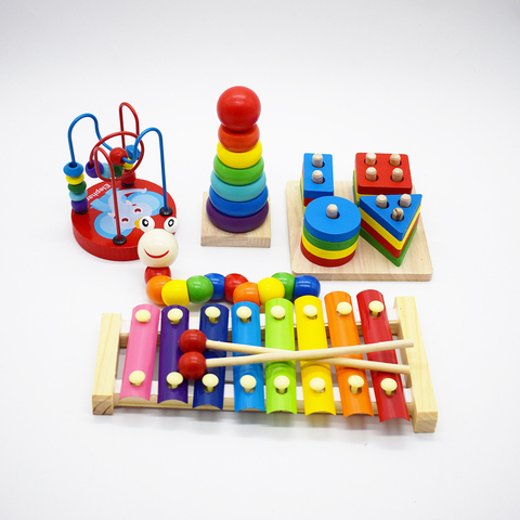 Juguete educativo para niños, tablero de rompecabezas, bloques de arcoíris de madera, xilófono para bebés, Juguete musical, juguetes de madera para bebés